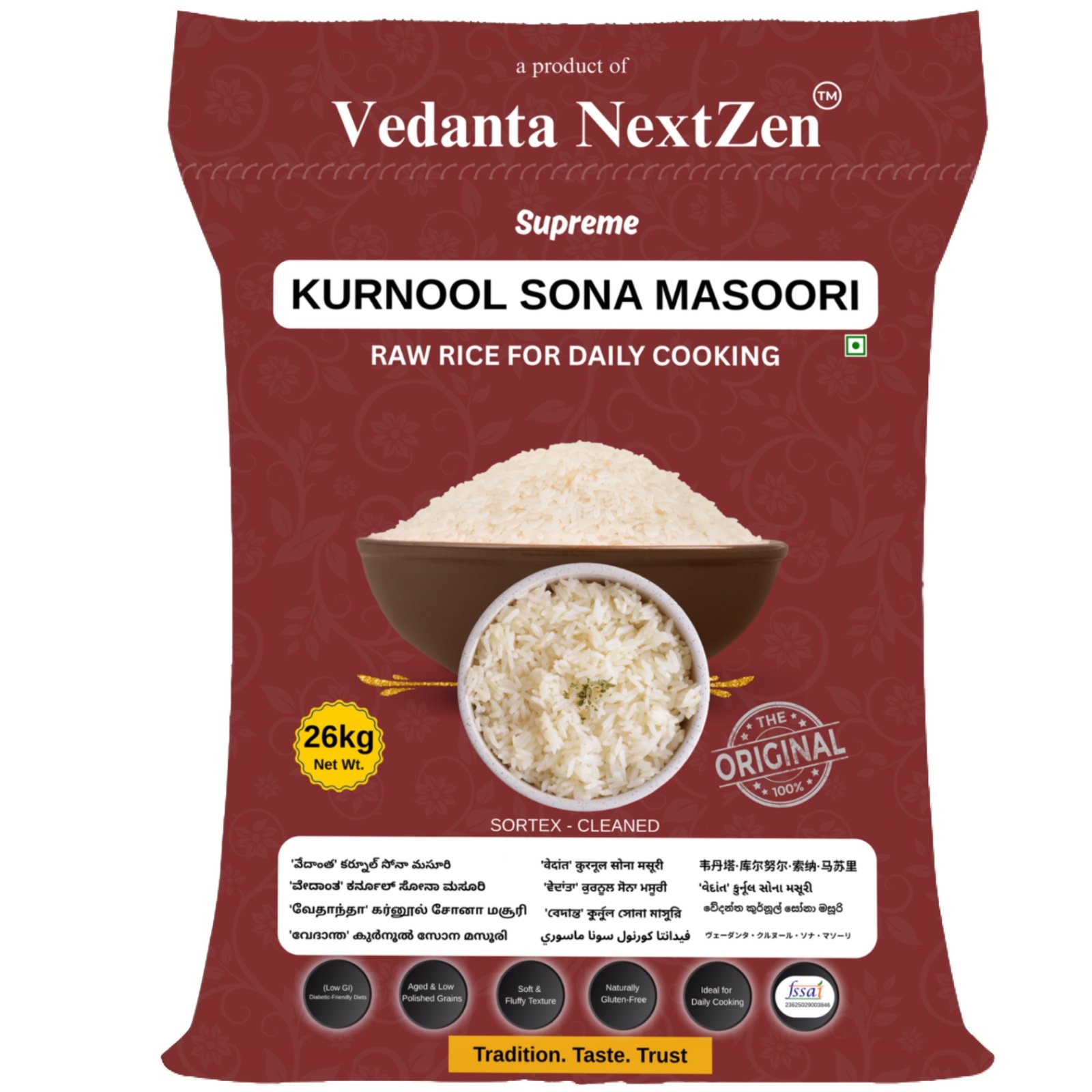 Vedanta NextZen™ Original Kurnool Sona Masoori Raw Rice – 26kg